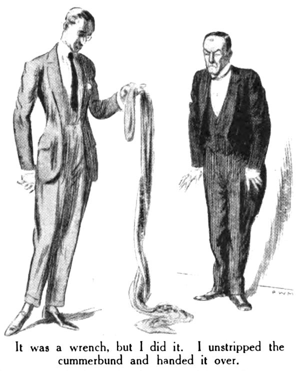 There was a pause. And then—well, it was a wrench, but I did it. I unstripped the cummerbund and handed it over.