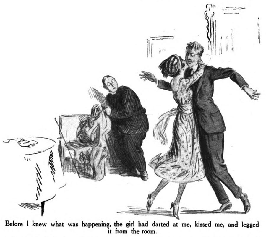 The girl took the piece of paper, shoved it in her bag, grabbed the money and slipped it to brother Sidney, and then, before I knew what was happening, she had darted at me, kissed me, and legged it from the room.